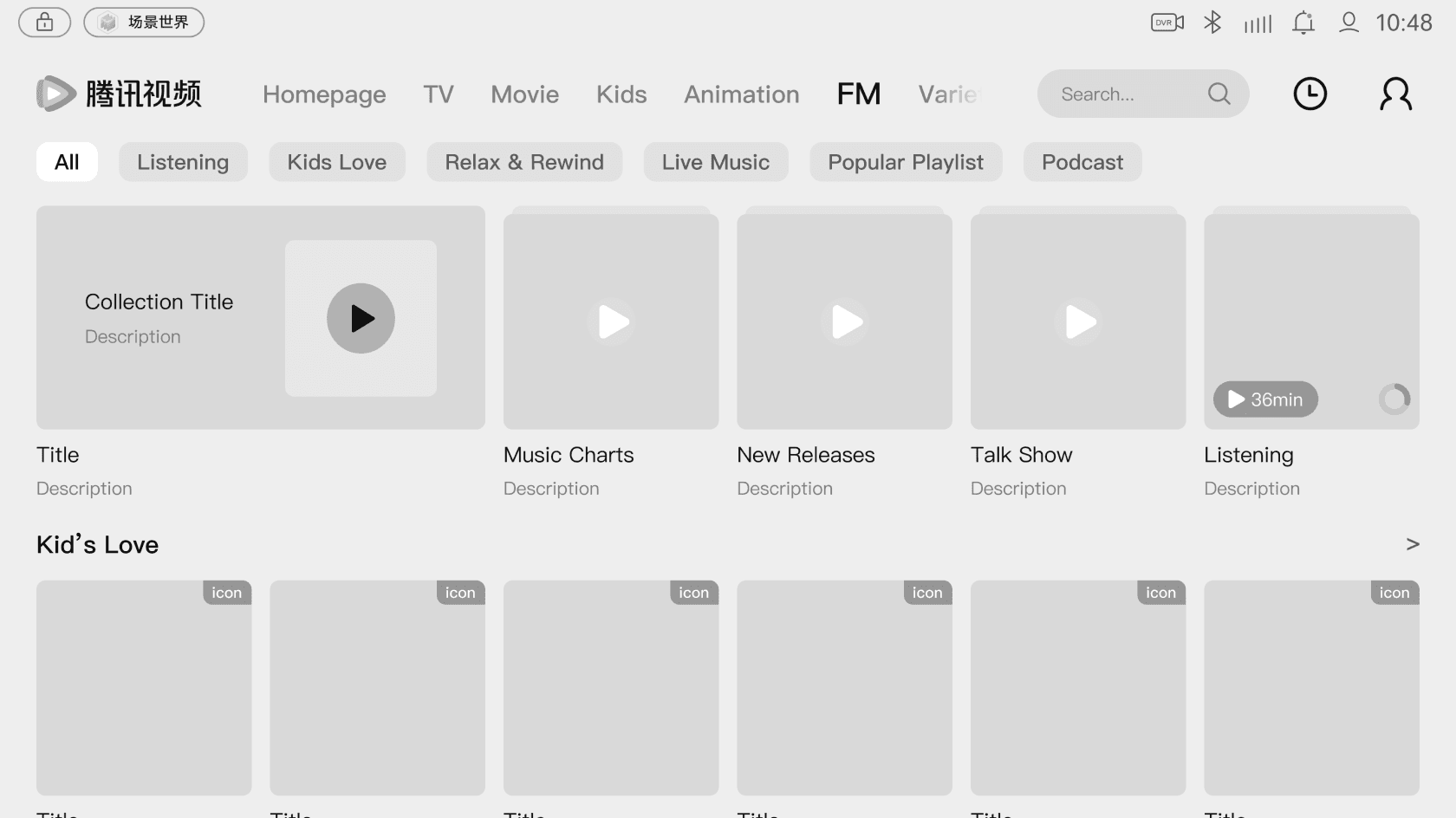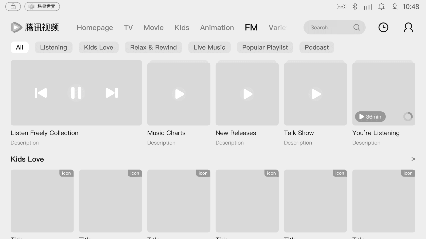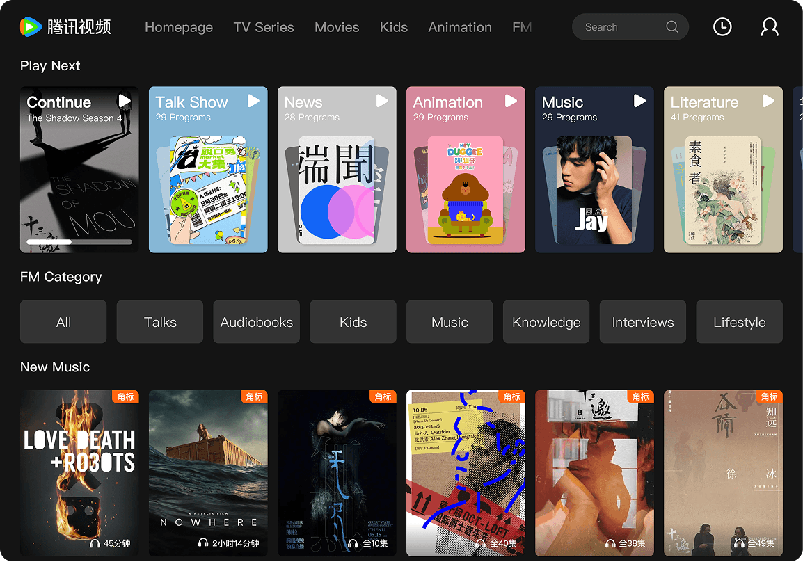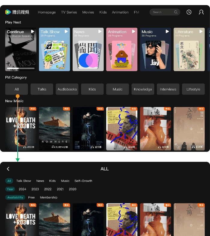 FM Channel is a completely new feature developed in response to the rise of in-car entertainment which had not appeared on any previous Tencent Video platforms.